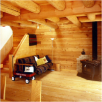 小規模な、住宅としてのログハウスですが、折れ屋根マンサードタイプの為、